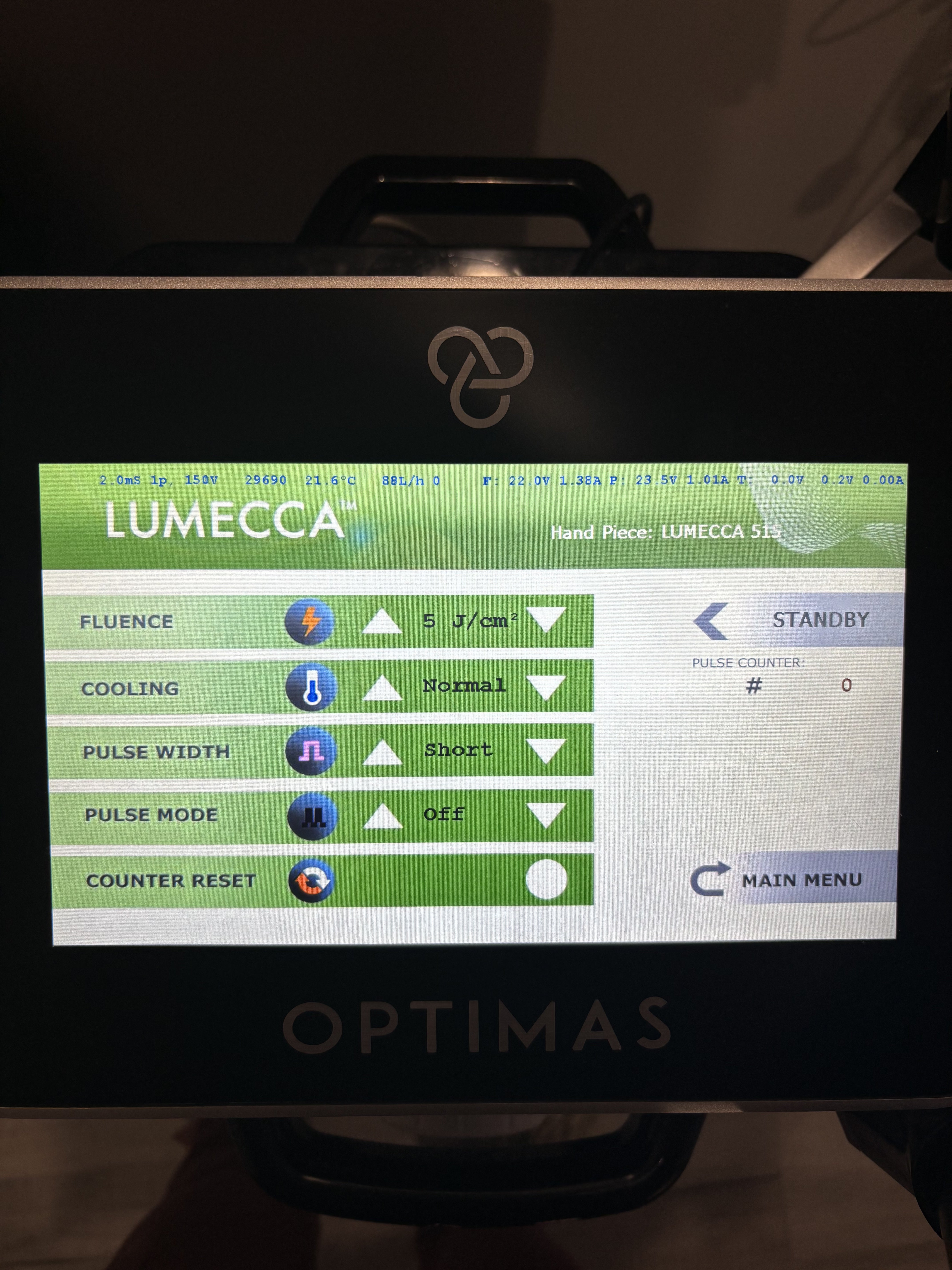 • Lumecca 515 Handpiece: Less than 30,000 Shots